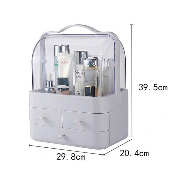 Organisateur pratique pour cosmétiques : les organisateurs de maquillage sont la solution parfaite si vous cherchez à simplifier votre routine de beauté et désencombrer votre maison en une seule étape facile.Grande capacité : le premier niveau de l’organisateur de maquillage avec rotation bilatérale vous permet de choisir vos produits de soins de la peau facilement. Les 2 tiroirs de rangement inférieurs permettent de ranger séparément les rouges à lèvres, gels à lèvres, pinceaux de maquillage, crayons à sourcils, bâtons de fond de teint, gadgets de beauté, colliers, bagues et plus encore.Résistant à la poussière et imperméable à l’eau – Le tiroir de rangement de maquillage avec couvercle est idéal pour ranger les articles de beauté personnels proprement et rend le comptoir de votre commode ou salle de bains bien rangé.Dimensions : 34,7 x 28,5 x 18,2 cm. L’organisateur de cosmétiques est fabriqué en matériau ABS de haute qualité et respectueux de l’environnement, durable et robuste. Facile à transporter, surtout lors de vos déplacements.Un cadeau parfait pour les femmes à la page : simplifiez votre routine de beauté avec la solution de rangement de cosmétiques. Idéal pour les anniversaires, Noël, le Nouvel An, la Saint-Valentin, la fête des Mères et plus encore.