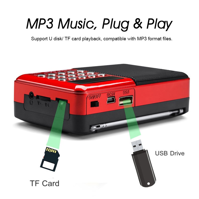 يتيح لك هذا الجهاز استماع الموسيقى و القرآن الكريم بسهولة من خلال منافذ USB وبطاقة SD، مما يوفر لك مرونة كبيرة في اختيار المصادر